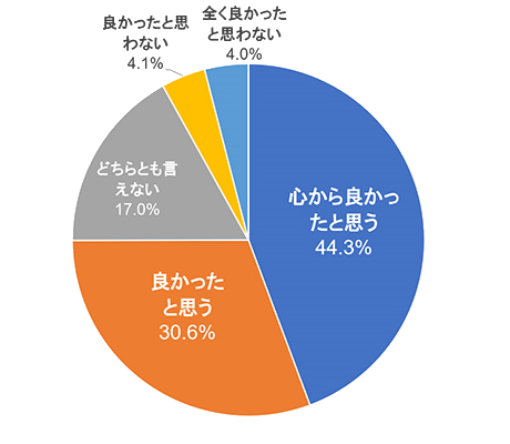 家庭連合の二世を対象としたアンケート調査で、75%の2世が「家庭連合の二世として生まれて良かった!」と回答しています。良かったと思わないは約8%います。